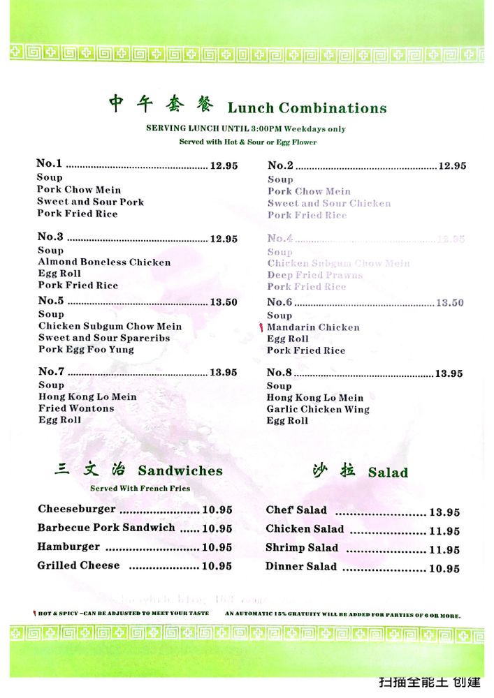 The Wah Hing Restaurant in Rathdrum, ID offers a Chinese dining experience with a wide range of options for both vegetarians and meat lovers. Known for their appetizer combo plate featuring egg rolls, wings, crab puffs, prawns, and BBQ pork, this restaurant caters to those looking for a flavorful start to their meal. The lunch and dinner combos served with soup provide a satisfying and filling dining experience. The restaurant's casual and quiet atmosphere, along with amenities like outdoor seating, catering options, and waiter service, make it a versatile choice for various occasions. Whether you're craving traditional dishes like almond boneless chicken or looking to try something new like subgum chow mein, The Wah Hing Restaurant aims to deliver a memorable dining experience. From the friendly staff to the delicious dishes, this restaurant has something for everyone.